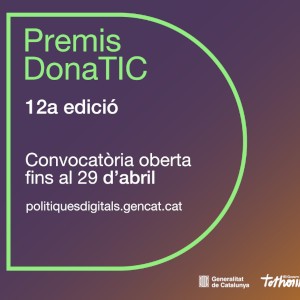 Des d’avui i fins al 29 d’abril a les 14:00 h, ja es poden presentar les candidatures per la dotzena edició dels Premis DonaTIC. Aquests guardons, impulsats per la Secretaria de Polítiques Digitals del Departament d’Empresa i Treball, tenen per objectiu reconèixer el paper i el talent de les dones en el món professional, empresarial i acadèmic de les tecnologies digitals; divulgar referents femenins contemporanis entre la societat per promoure les vocacions en ciència, tecnologia, enginyeria i matemàtiques (CTEM); i fomentar la presència femenina en els estudis tecnològics i les enginyeries.